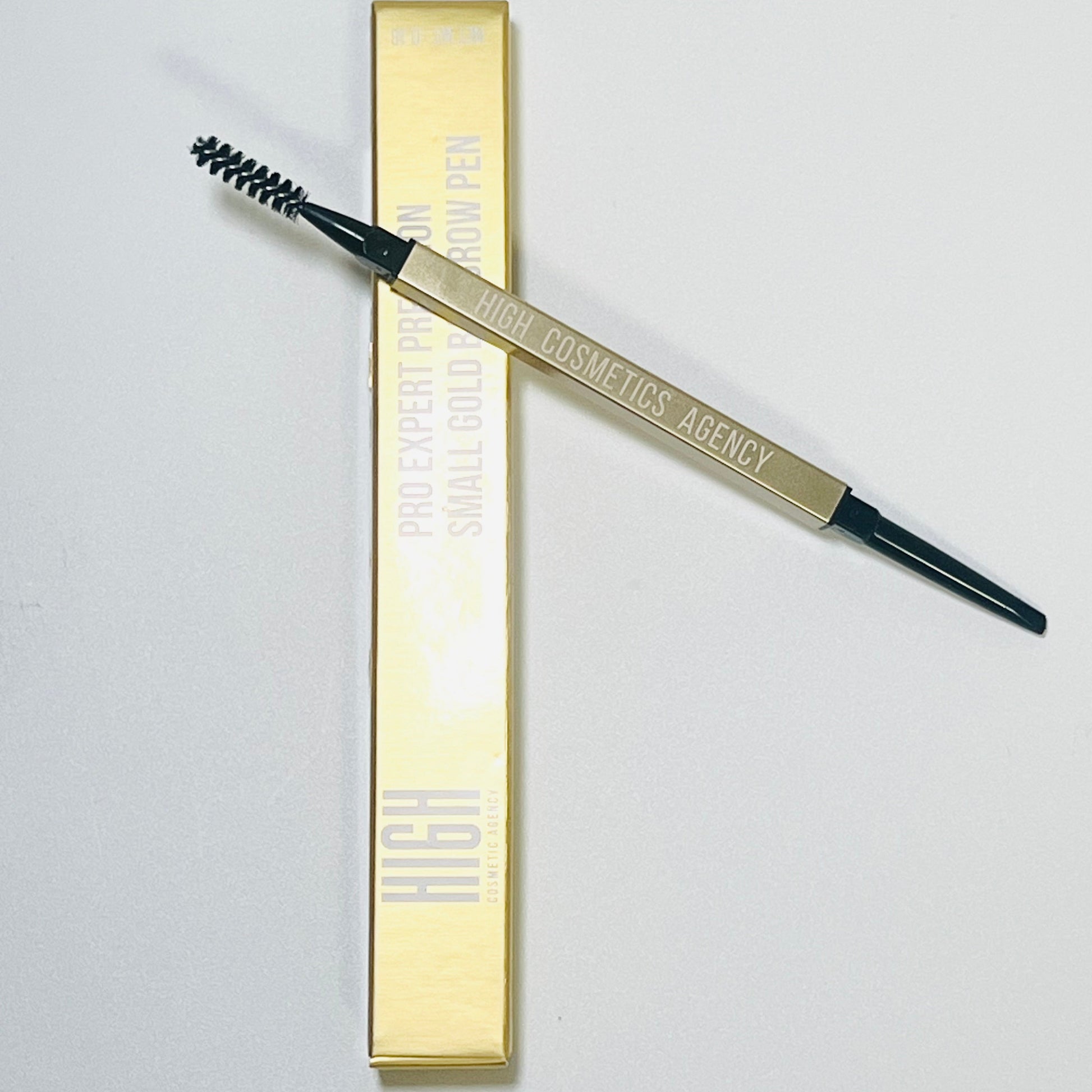 HIGH COSMETIC AGENCY's Small Gold Bar Brow Pen is a dual-headed eyebrow pencil, designed to provide precise and long-lasting application. Some features that seem common to different products with this name include: